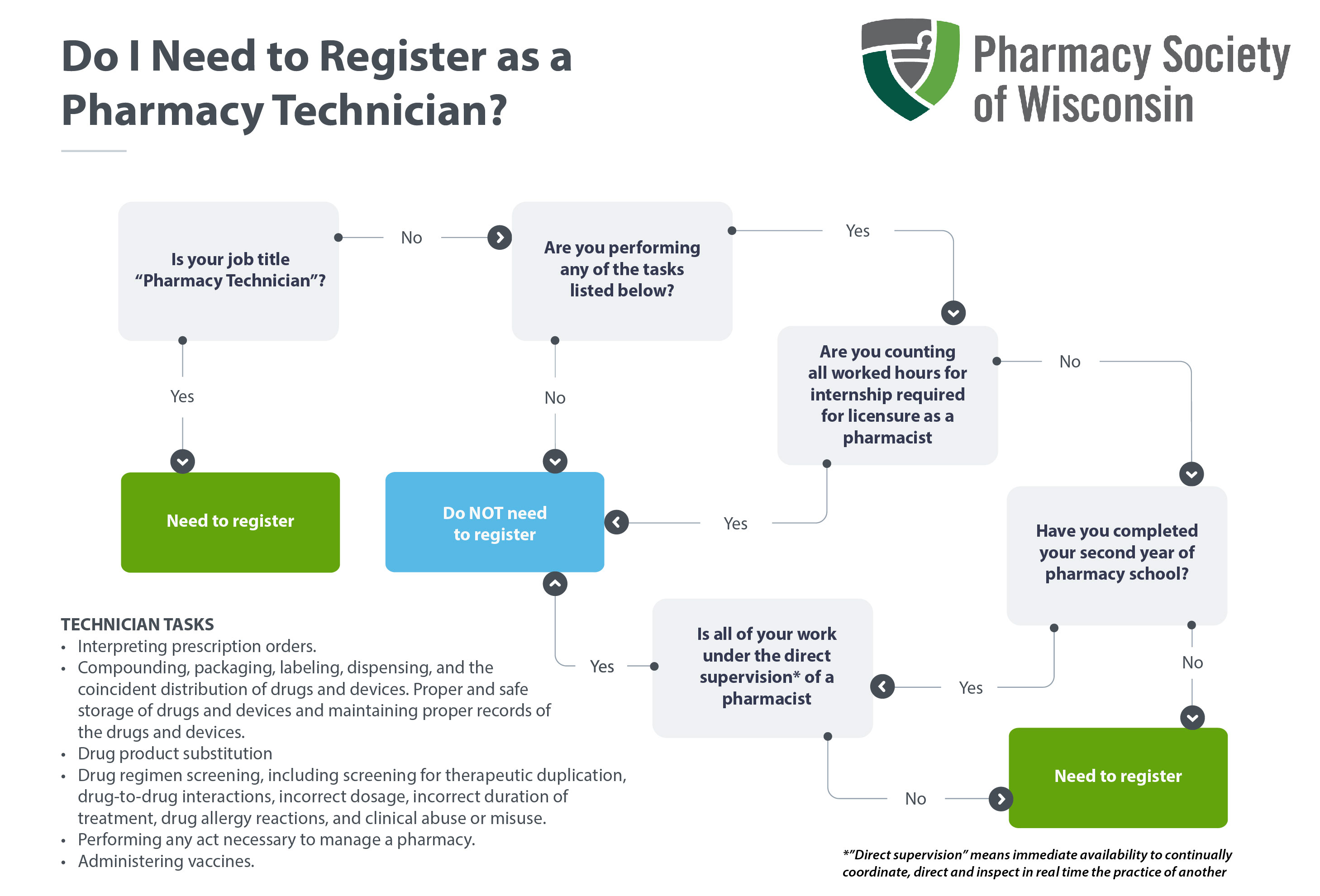 I am a third-year pharmacy student and work part-time as a pharmacy intern, and all of my tasks are performed under the direct supervision of a pharmacist. Do I need to register?